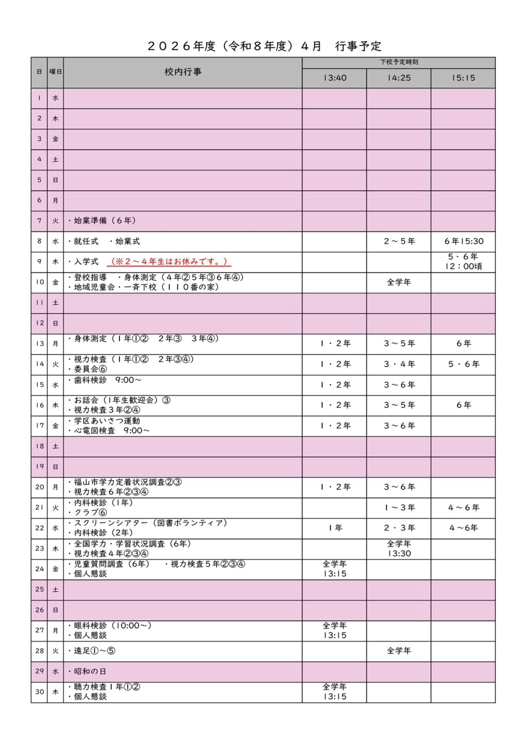 学区共通のお知らせ