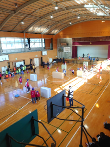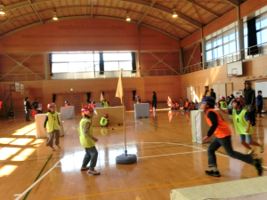 1月26日に、川口小学校体育館で小学生家庭を対象にスポーツ雪合戦大会を開催し、70人以上の親子が参加しました。