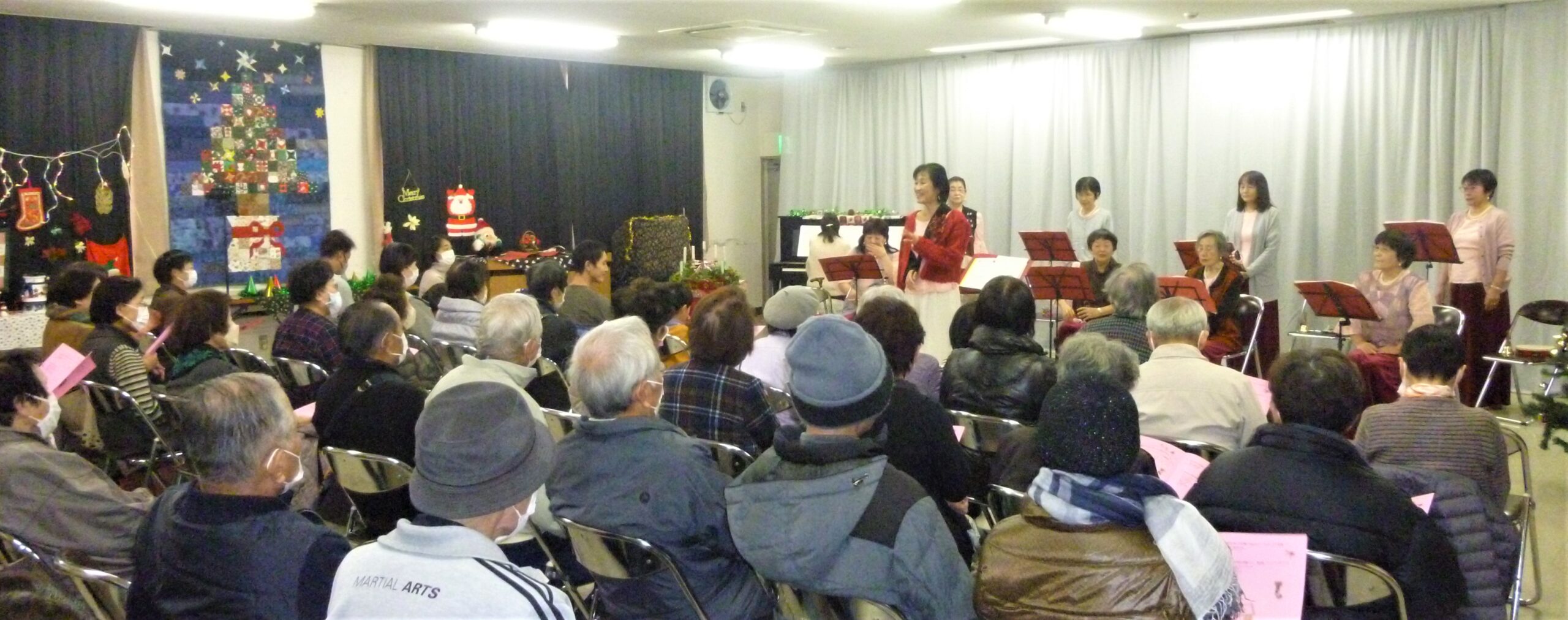 たくさんの飾りでクリスマスムードたっぷりの会場に素敵な歌声が響きます。
