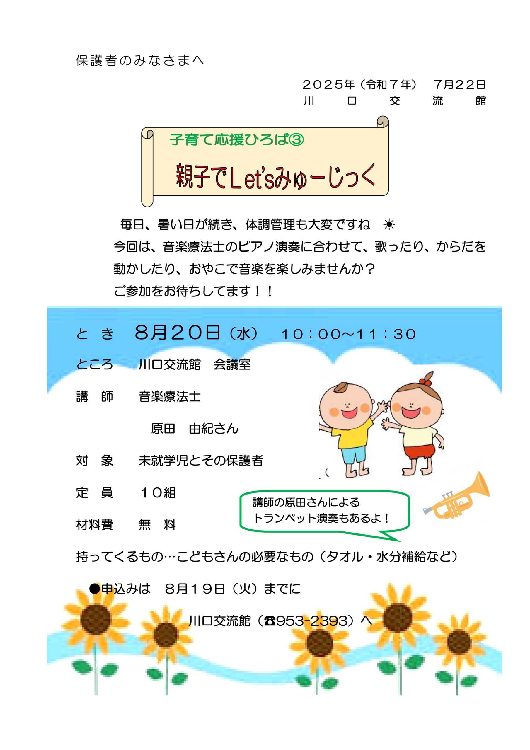 申込みは、8月19日(火)までに川口交流館(📞084-953-2393)へ