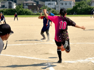 今年度も他学区に参加を呼びかけ、ソフトボールは8チームでリンクリーグ戦を行い、川口学区は霞学区との合同チームで出場しました。フットベースボールは、9チームのトーナメント戦を行い、川口学区が激戦の末、優勝しました。