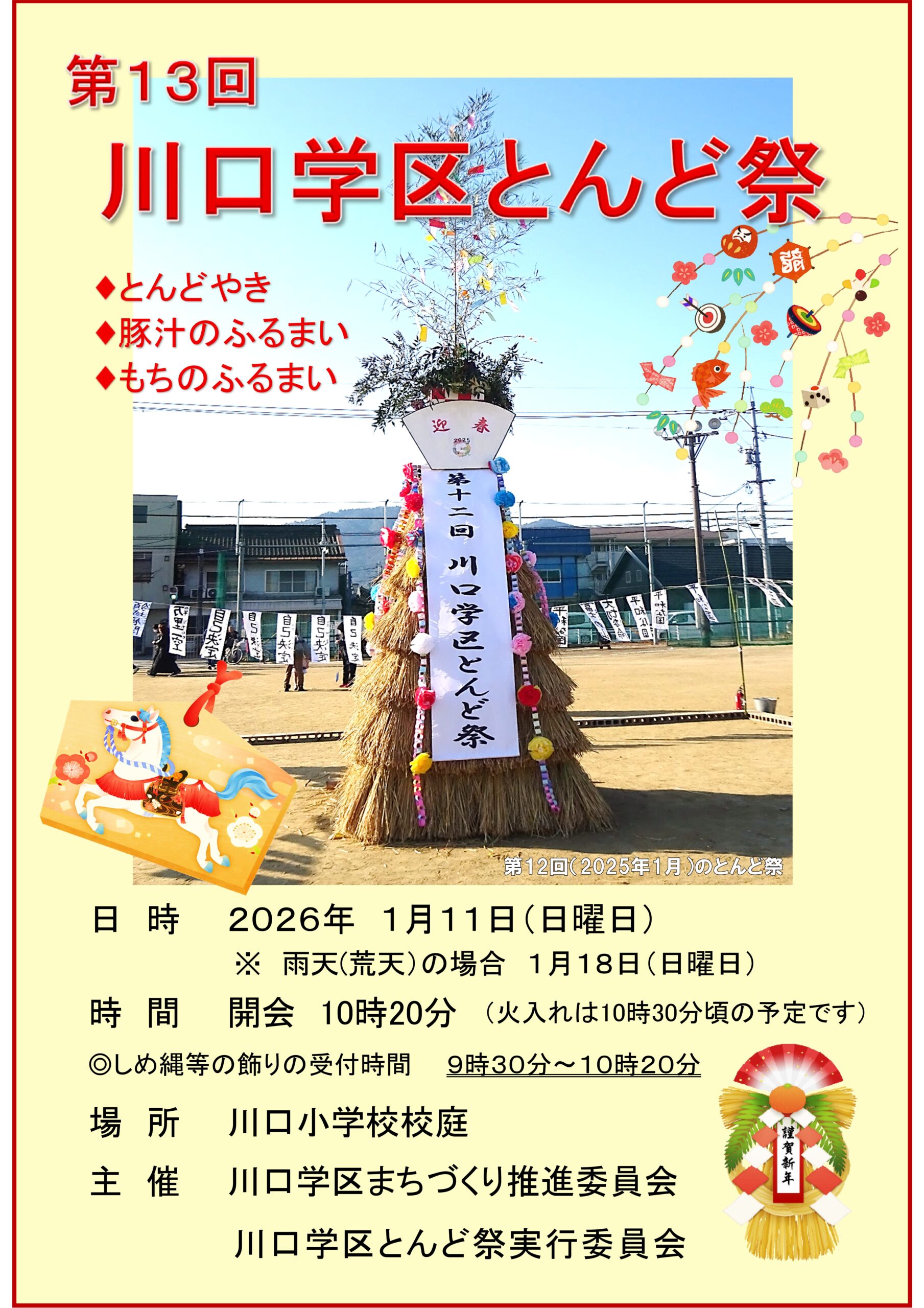 しめ縄やお正月の書初めなどを燃やしたい場合は、10:20までに本部テントに持って来てください。